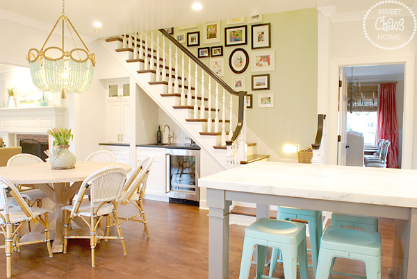 The kitchen truly is the heart and hub of our home. There is a constant flow of kids coming and going through the side entry on the right and the stairs on the left. It's quite the circus, especially now that one of my kids has taken up juggling.